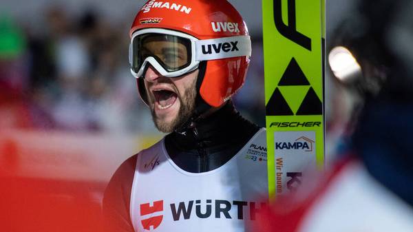 Constantin Schmid der 17. Verfolgt hier die Vierschanzentournee den Weltcup die Skisprung Weltmeisterschaften.